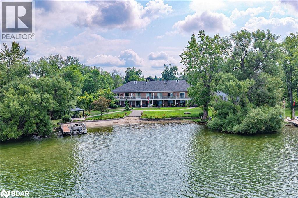 Welcome to Atherley Gardens and waterfront living on Lake Simcoe! This boutique complex is comprised of only 8 units, each with its own double car garage plus 2 exterior parking spots. Featuring direct beach access and spectacular unobstructed water views from this second floor end unit. With no lobby and no elevator, Atherley Gardens is unique with direct access to the unit from the covered front deck. The end unit offers a cozy corner to sit and relax on the front deck, as well as a private lakeside balcony with room for your bbq, outdoor dining, and picturesque sunsets. The moment you step inside this carpet free home, the open concept kitchen dining living area showcases the waterfront view. The classic white kitchen offers plenty of cabinetry, centre island with additional storage and plenty of gorgeous granite counter space which flows seamlessly to the spacious dining and living area perfect for entertaining. The king size primary bedroom also has access to the lakeside deck plus an ensuite with a large jetted tub and new walk in shower. Another full bathroom, in-suite laundry with new washer (2022), new owned hot water tank (2022) and new shingles (2025). Swim, kayak, boat, walk & bike the trails, minutes to marinas, Orillia and Casino Rama, this central location offers convenient year round living or a care-free cottage getaway! (id:53086)